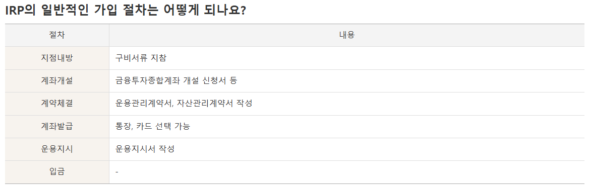 IRP는 가입이 의무인 계좌는 아니지만, 퇴직급여를 연금 방식으로 수령하고자 할 경우에는 IRP 계좌로의 이전이 법적으로 요구되므로 금융기관 선택이 매우 중요합니다.